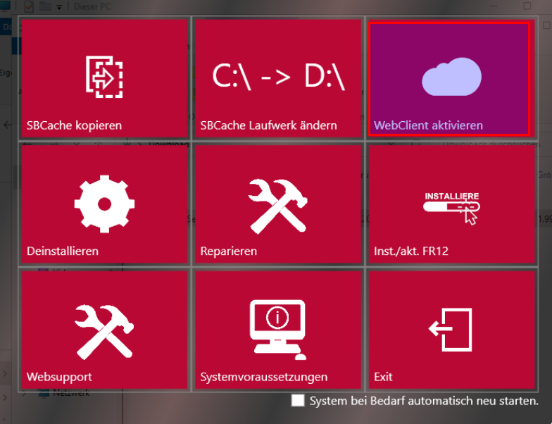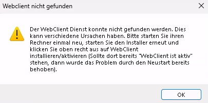 Bei Installationsende, Meldung mit Webclient.Server/Computer neustarten,
