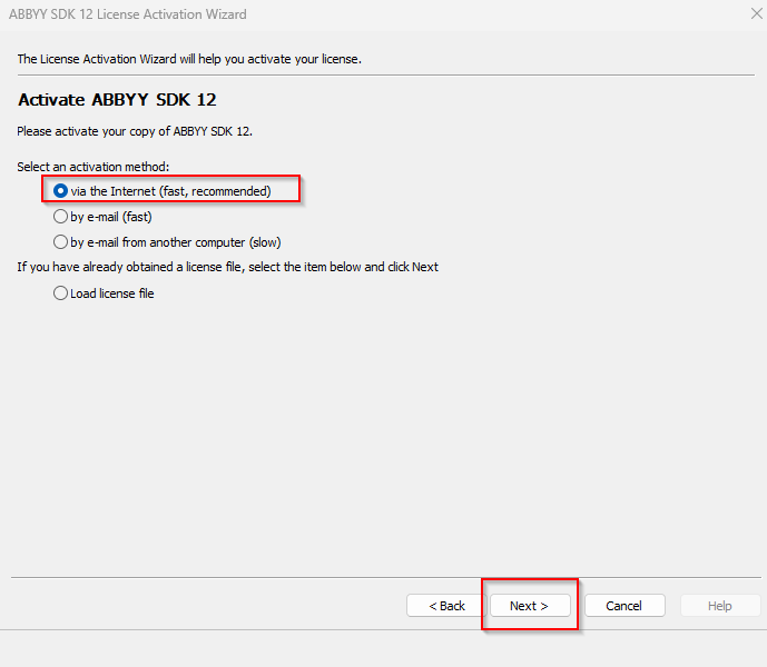 Internet aktivierung anklicken, bei Migration nicht vergessen die alte Lizenz zu deaktivieren!!!