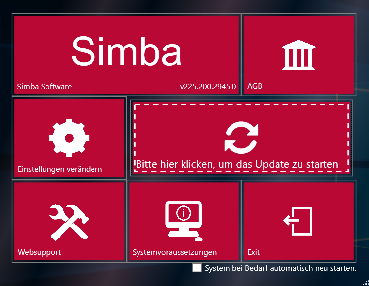 Update von SIMBA ist eigentlich relativ einfach. Die Full Exe herunterladen und auf Aktualisieren klicken.