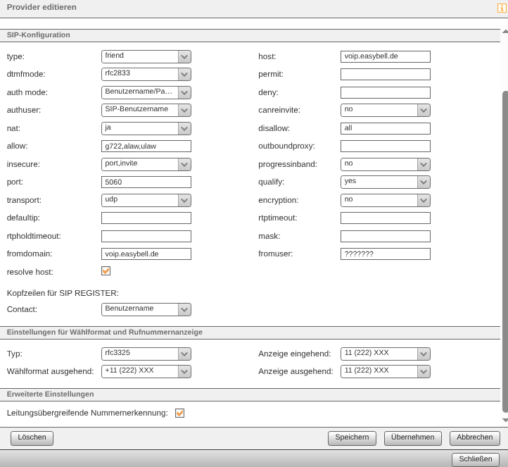 Easybell Profil einstellungen: