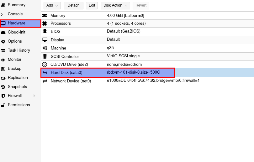 und auf den Menüpunkt Hardware gehen und die Disk anklicken, so das sie ausgewählt ist.