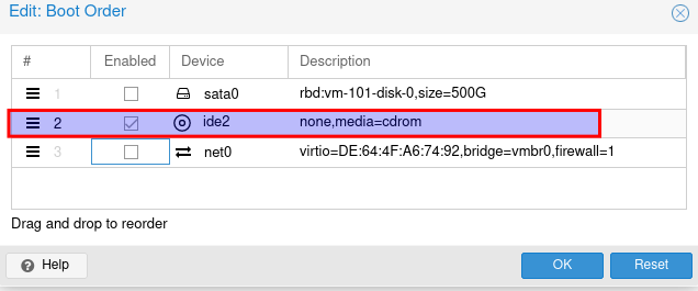 Eintrag zur VM.conf hinzufügen. Achtung die ID muss wieder an eure angepasst werden und die Image Datei vom Namen falls Ihr eine adrere Version habt.