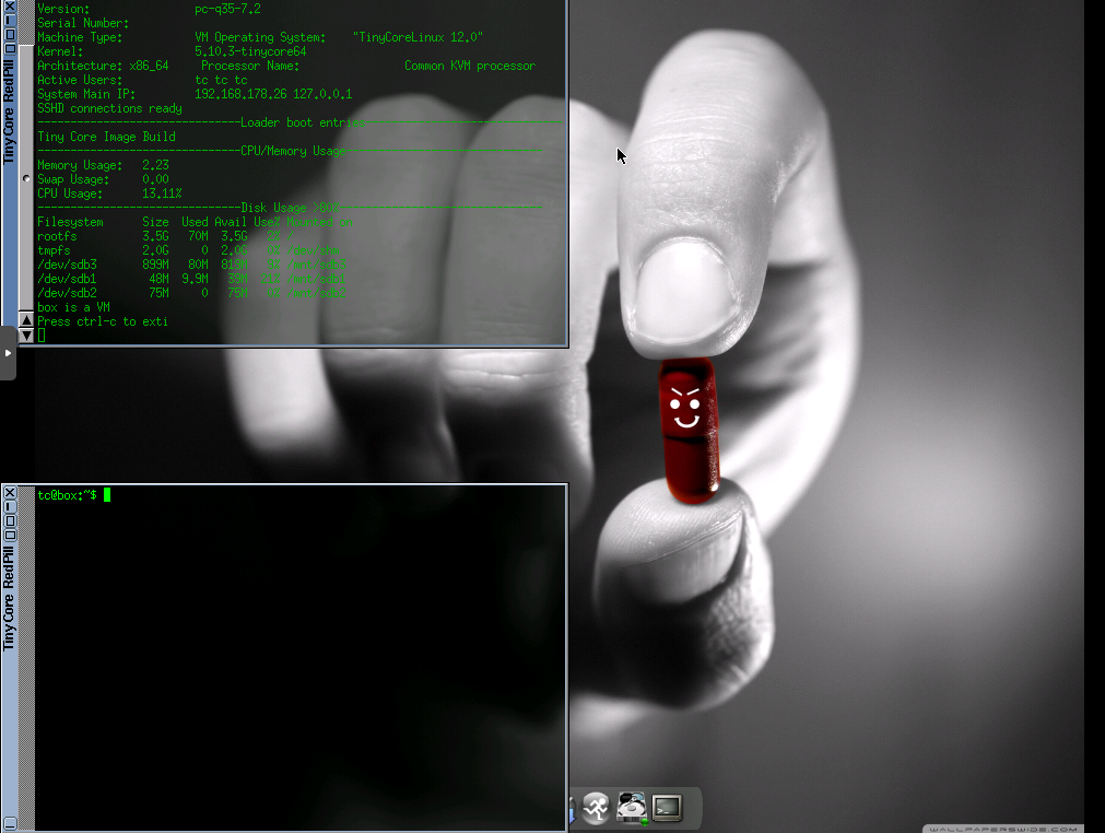 Nachdem die VM gestartet ist und die Shell geladen ist folgende Befehler absetzten