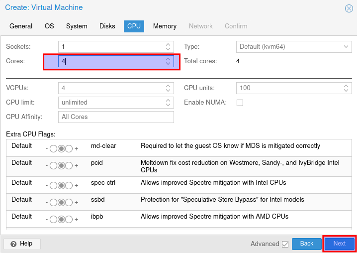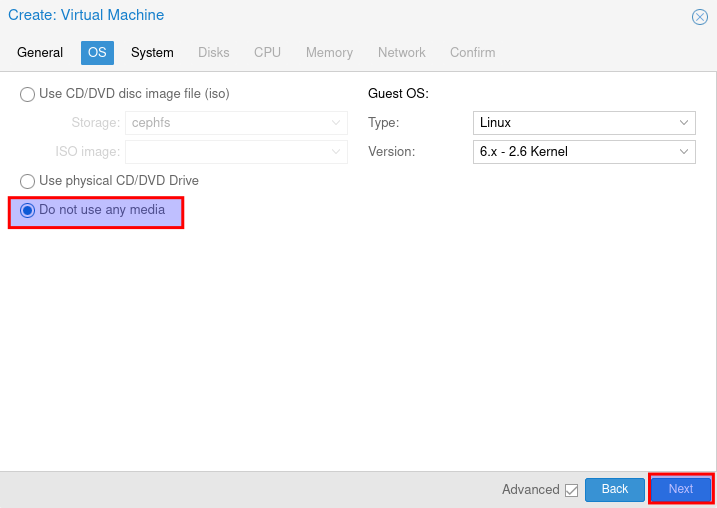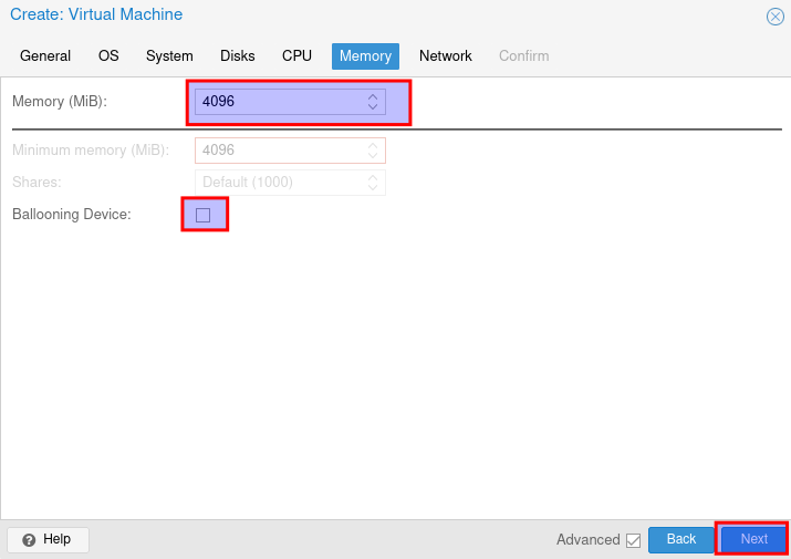 DISk size : Größe der Disk Festlegen. Ich nehme hier 500 GB.