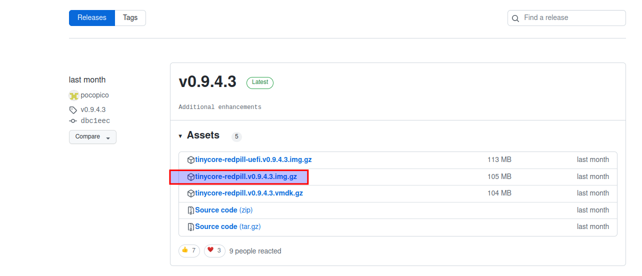 wget https://github.com/pocopico/tinycore-redpill/releases/download/v0.9.4.3/tinycore-redpill.v0.9.4.3.img.gz