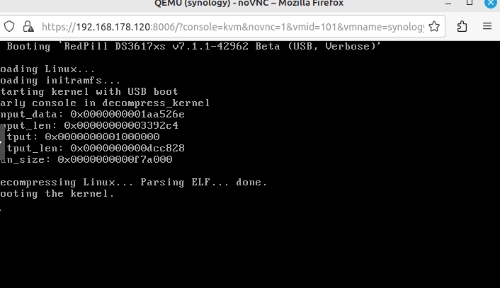 echo args: -device 'nec-usb-xhci,id=usb-bus0,multifunction=on' -drive 'file=/var/lib/vz/images/101/tinycore-redpill.v0.9.4.3.img,media=disk,format=raw,if=none,id=drive-disk-bootloader' -device 'usb-storage,bus=usb-bus0.0,port=1,drive=drive-disk-bootloader,id=usb-disk-bootloader,bootindex=999,removable=on' >> /etc/pve/qemu-server/101.conf