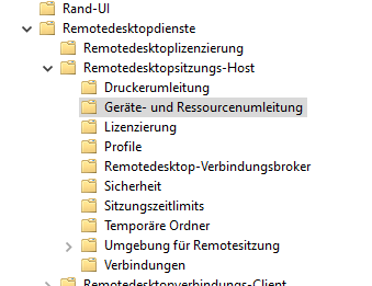 Remotedesktop Host -> Geräte und Ressourcenumleitung -> Umleitung bei unterstützen Plug & Play Geräten nicht zulassen