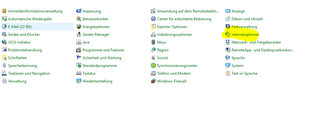 Dann auf Systemsteuerung -> Internet Optionen