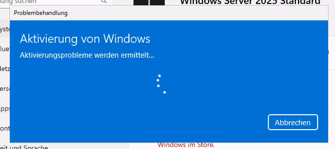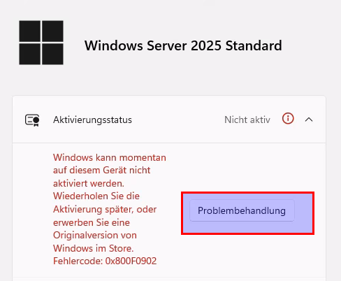 Nach der Installation von Windows Server 2025 aktivieren der einzigartigen Lizenz