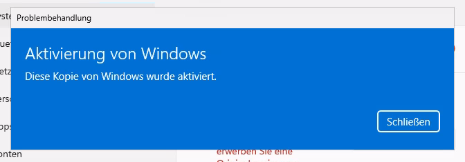 Danach gibts noch Fehler bei Aktivierung, einfach auf Problembehandlung klicken.