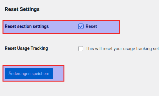 reset Section Settings anklicken und speichern anklicken