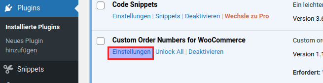 unter Einstellungen -> Custom Order Numbers for WooCommerce