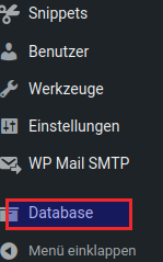 Nach der Installation gibt es links im Menü einen neuen Punkt der Datenbank.