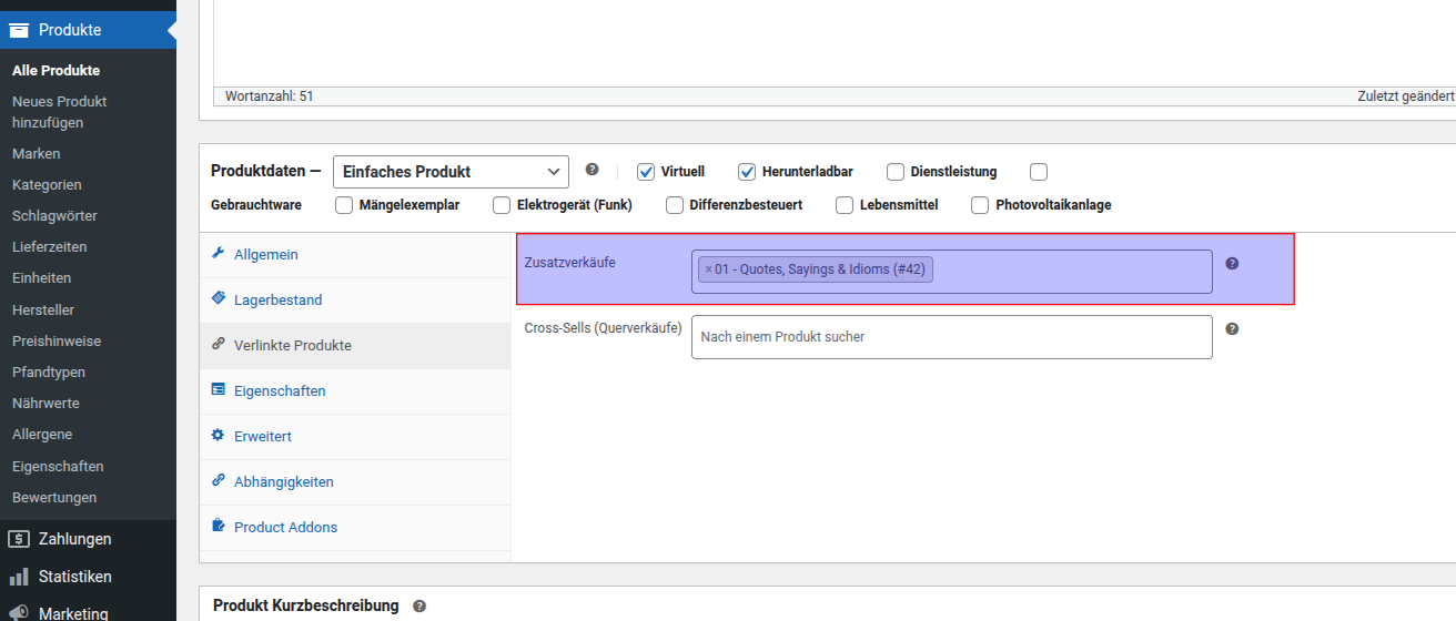 Snippet - Verlinkte Produkte auf Produktseite anzeigen